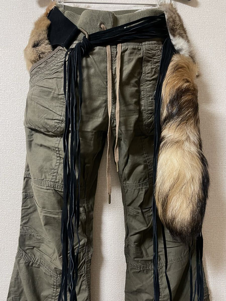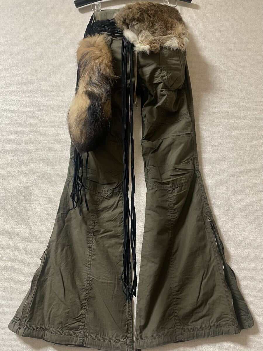 goa g.o.a vintage military rabbit fur belt gimmick ZIP Parachute Cargo flare Pants