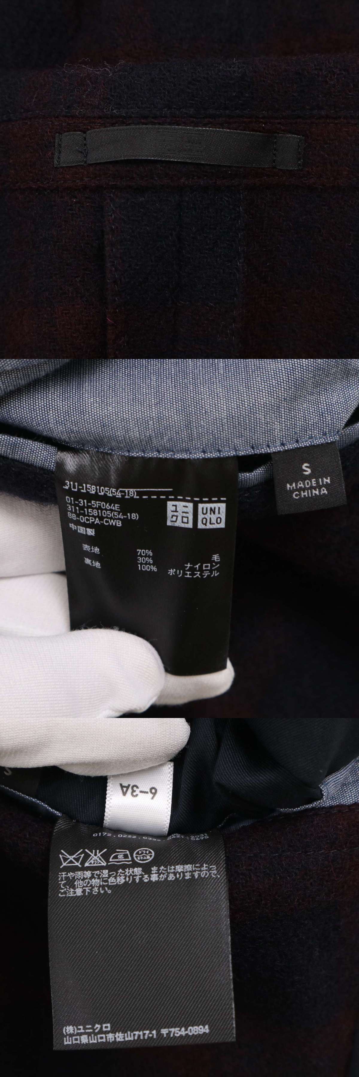UNIQLO ユニクロ 秋冬★ ウール ブレンド チェック柄 アンコン テーラード ジャケット Sz.S メンズ 收藏