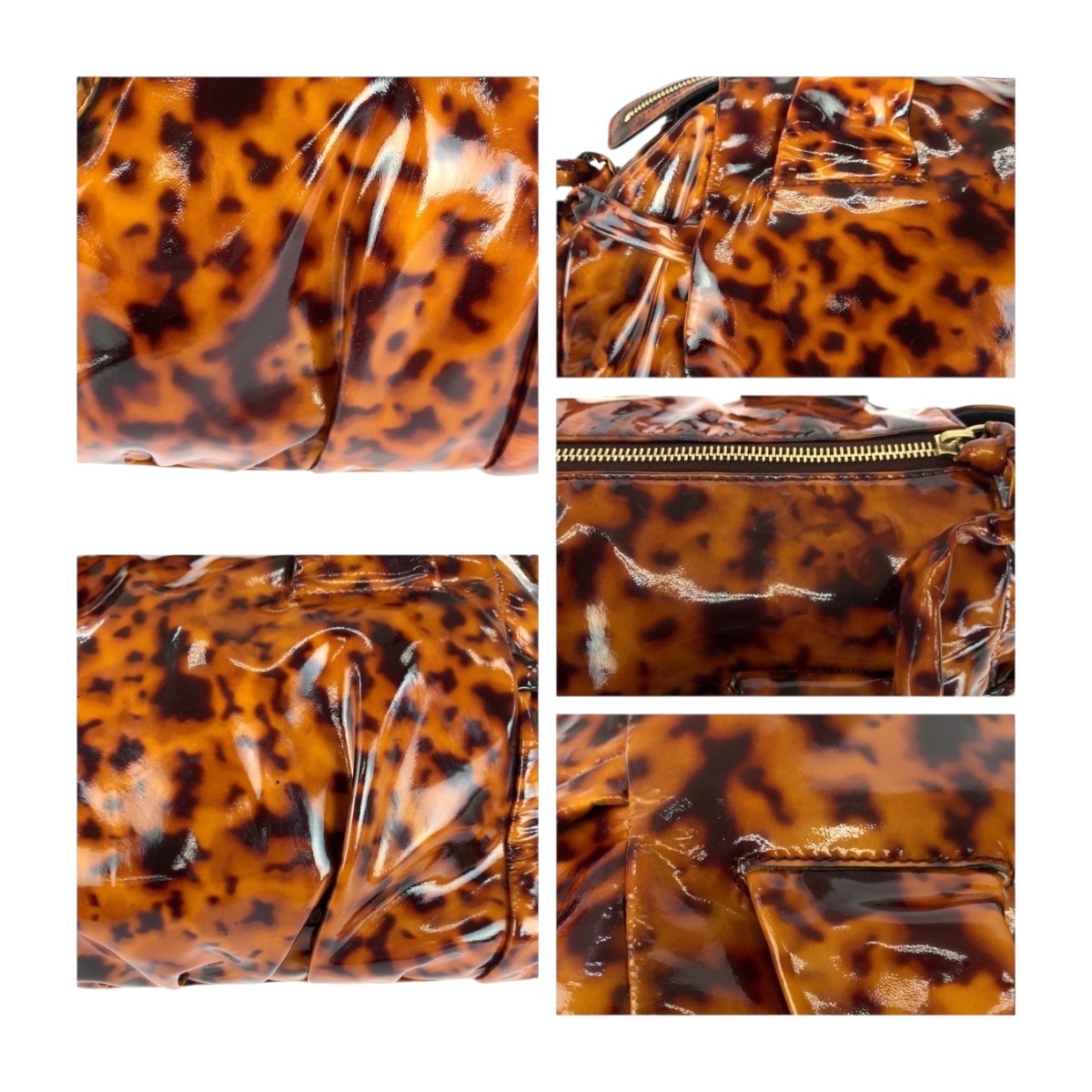 美品 GUCCI グッチ ヒステリア アニマル柄 ブラウン ゴールド金具 エナメル 197020 ハンドバッグ レディース 505125 收藏