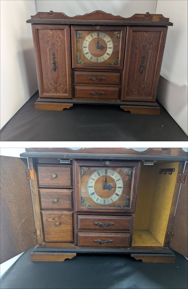 | 商品説明 | 【商品について】 ご覧いただきありがとうございます。 この度出品いたしますのは「 ●【不動品】希少アンティーク 木製 引き出し付 置時計 ジュエリーボックス 小物入れ● 」でございます。 個人所有物の整理のため、出品する運びとなりました。 中古品ではございますが、ご活用いただける方にお譲りできれば幸いです。 商品の状態、付属品、寸法等につきましては、掲載写真にてご確認をお願いいたします。 補足:当方、ペットの飼育および喫煙の習慣はございません。お気にされる方はご参考ください。