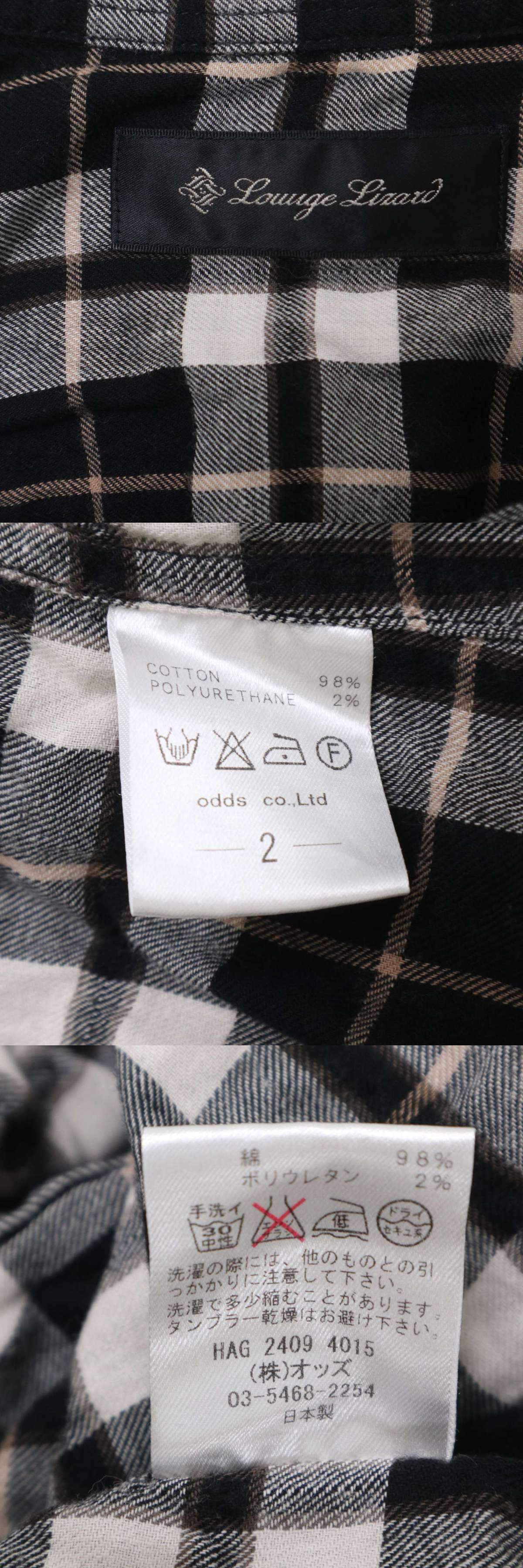LOUNGE LIZARD ラウンジリザード 秋冬 襟ワイヤー★ チェック柄 長袖 フランネル ワーク シャツ Sz.2 メンズ 日本製 收藏