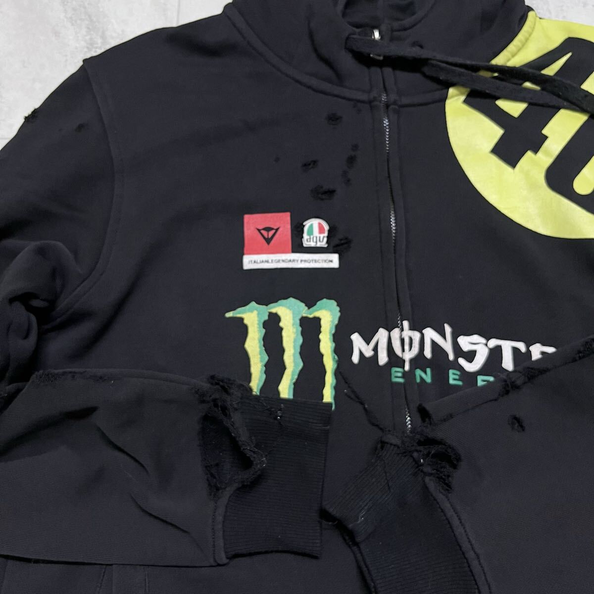 MONSTER ENERGY VR46 モンスターエナジー スウェット パーカー sweat hoodie フルジップ 長袖 レーシング ストリート プリントロゴ ダメージ ブラック USA企画 サイズL 玉mc4093
