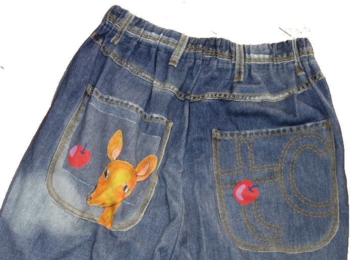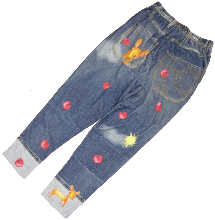 ・デニム風のプリントにカラフルなキャラクターが際立つ