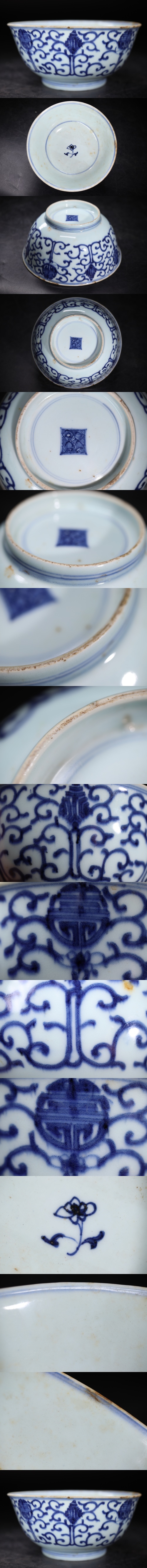 時代 底款 染付 唐草 ・ 花文 茶碗 / 清 中国美術 新渡 鉢 茶器 煎茶道具 .G2644 收藏