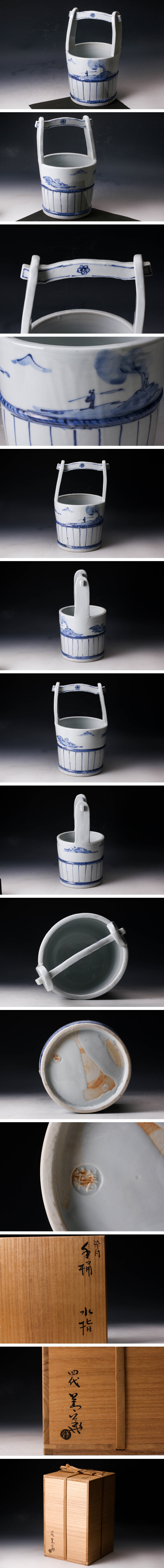 【佳香】四代 須田菁華 高さ28cm 染付手桶水指 共箱 茶道具 本物保証 收藏