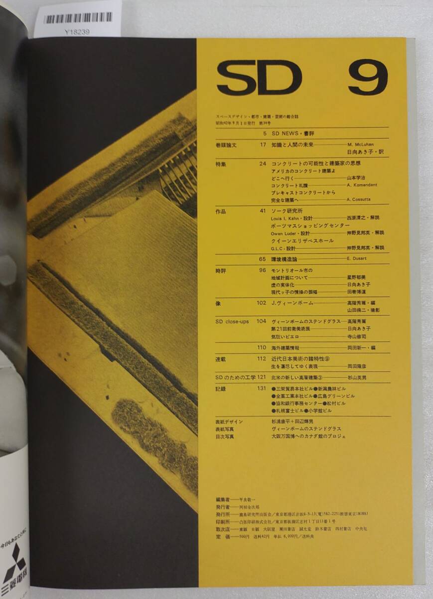『SD スペースデザイン 1967年9月号 コンクリートの可能性と建築家の思想』52-01-2B_20250926_nm_Y18239 收藏