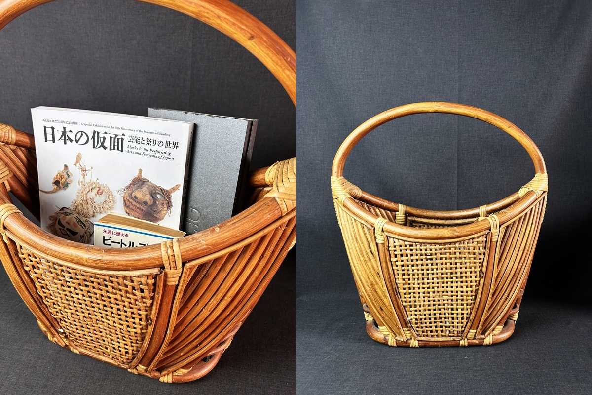 籐製 マガジンラック 手付き◇本立て/バスケット/インテリア/ブックシェルフ/スタンド/カゴ/籠/収納/雑貨/天然素材/ナチュラル 收藏