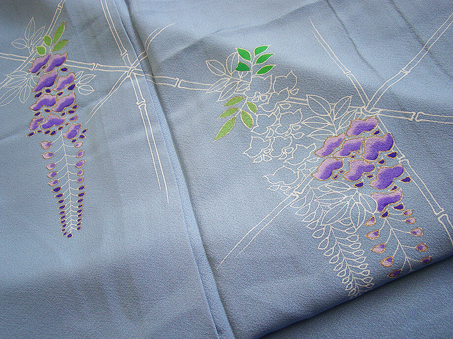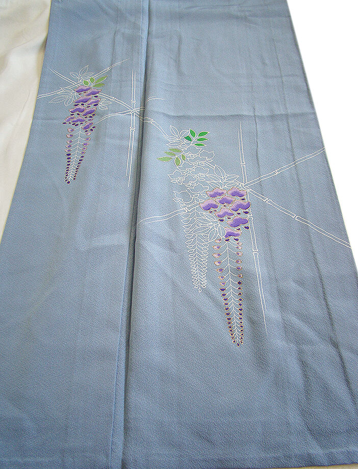 きものしらゆり 身丈161cm 裄64cm 5・6・9月 単衣 ちりめん地 藤の花 付下げ 正絹 身長150cm~156cmの方に最適 B530 收藏