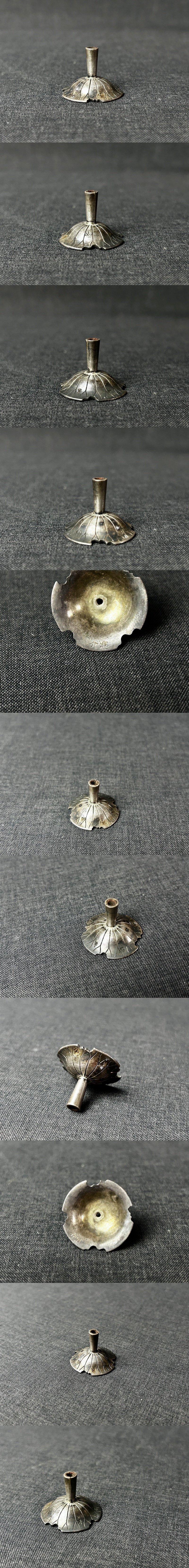 秦蔵六 在銘 時代物 香立て◇蓮の葉型/香道具/仏具/線香/金属工芸/銀製品/骨董/古美術/希少/逸品/旧家蔵出し/銀製? 收藏