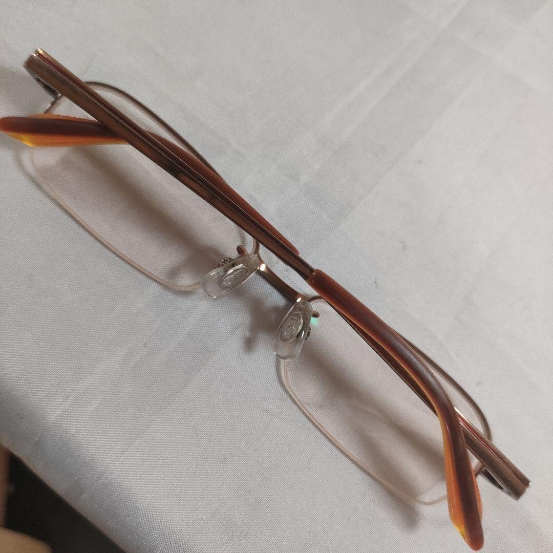 ブラウン系の洗練されたデザインのメガネ、サイズ52-16-135。