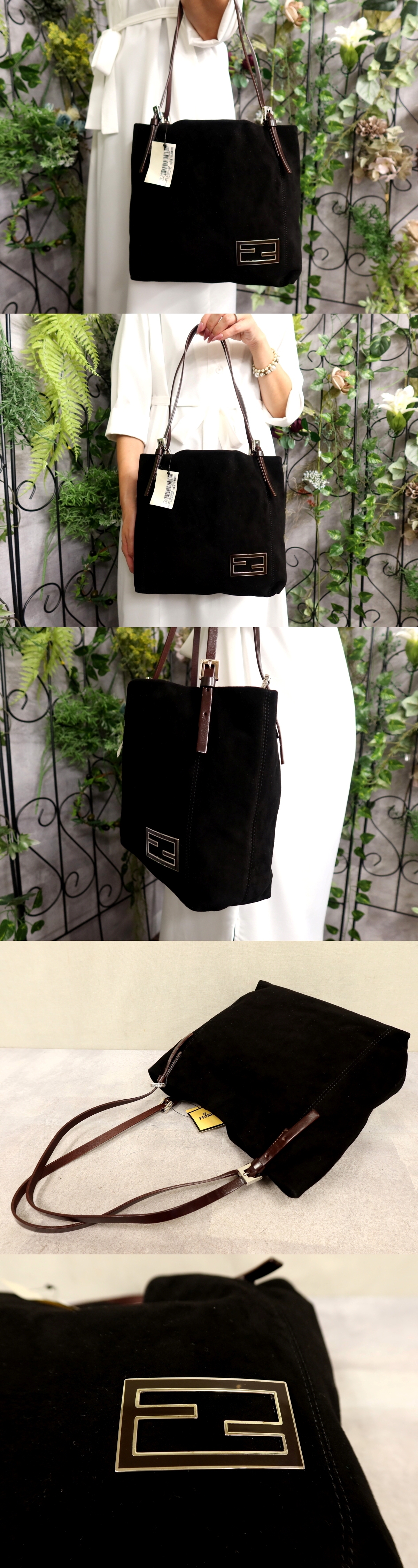 ●超美品●FENDI フェンディ●スエード カーフ レザー 本革●トート バッグ●黒●シルバー金具●腕掛け●B5 書類●収納 かばん●Js61011 收藏