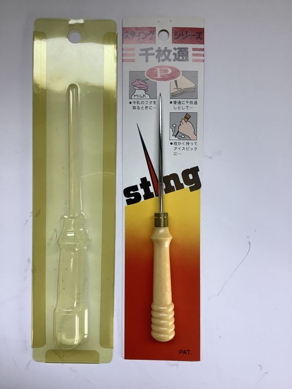 | ◎今回の訳ありは倉庫に長い間あったためにブリスターが変色しています ブリスターを外して本体の千枚通しは全く変色していませんでした ◎紙などにヒモを通す時に穴を開ける時に使う千枚通しです ◎その他にもたこ焼きなどをひっくり返す時に使うピンにも使えます ◎全長は全長約180ミリで針の長さは約90ミリくらいです | ||