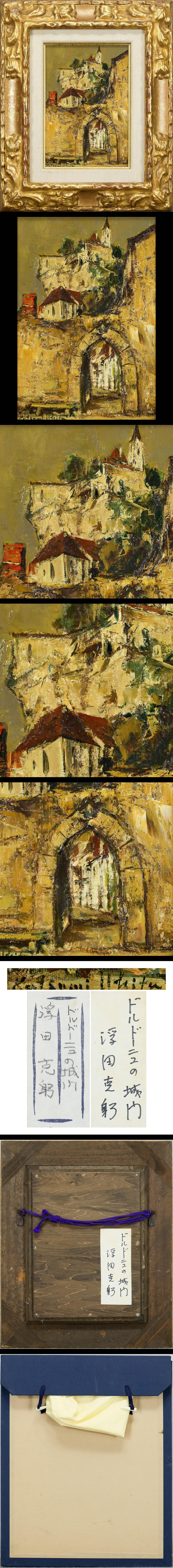 【真作】【WISH】浮田克躬「ドルドーニュの城門」油彩 SM ◆重厚マチエール・歴史薫る石壁の街名画 〇物故巨匠 日展評議員 #25102237 收藏