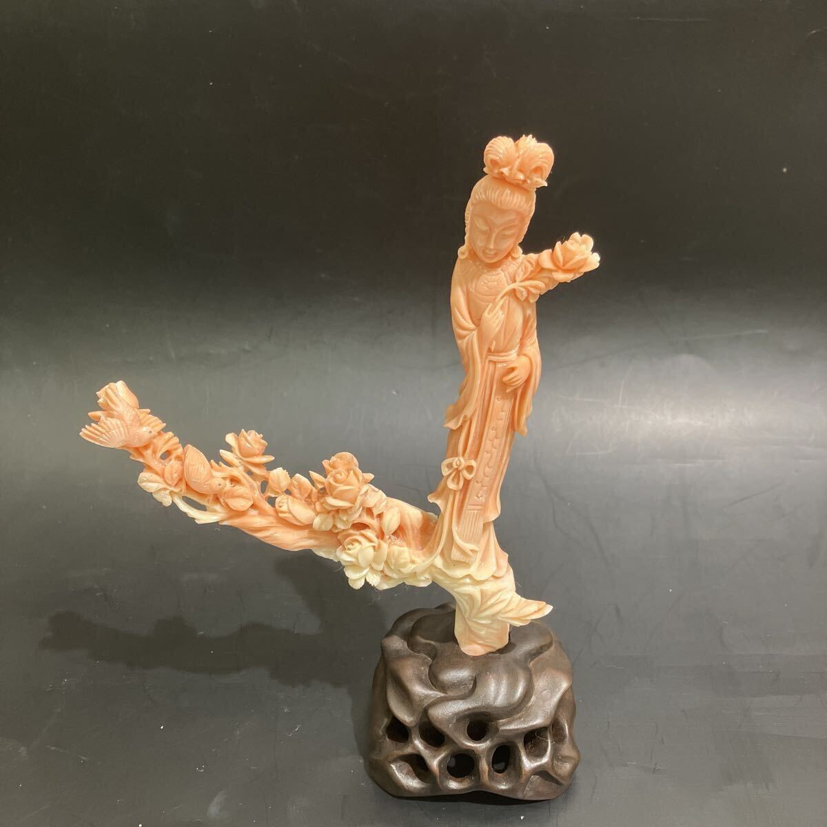 10646 珊瑚 インテリア 粉紅ボケ仙女 サイズ高さ19cm(台座含) 総重量218g(台座含) 旧家長期保管品 收藏