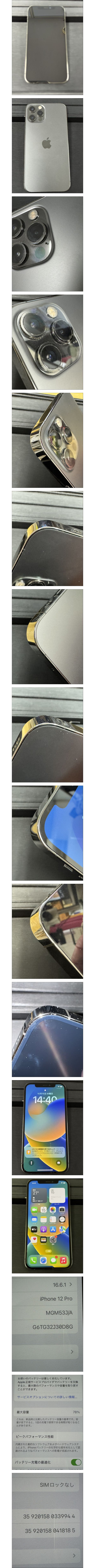 商品説明 | iPhone12 Pro 128GB★softbank版利用制限〇★SIMフリー★Apple★MGM53J/A★本体のみ IMEI:359201580339944 アクティベーションロック解除済です、初期化後発送します。 最大充電78% 写真にてご判断頂ける方、ご理解いただける方のみご入札をお願いいたします。 細かな状態をお気になされます方や、完璧な美品をお求めの方は、ご入札をお控えください。 |