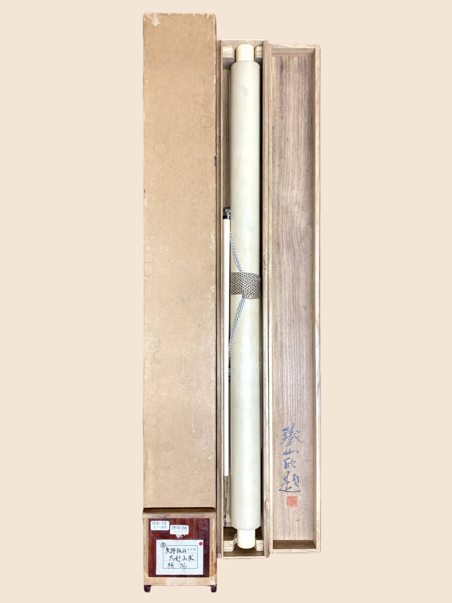 掛軸の軸先ですが、配送中の振動・気温・経年劣化等で外れてしまうことがあります。軸先の外れは、返品の対象にはなりません。大変お手数ですが、お客様ご自身での修復をお願い致します。
