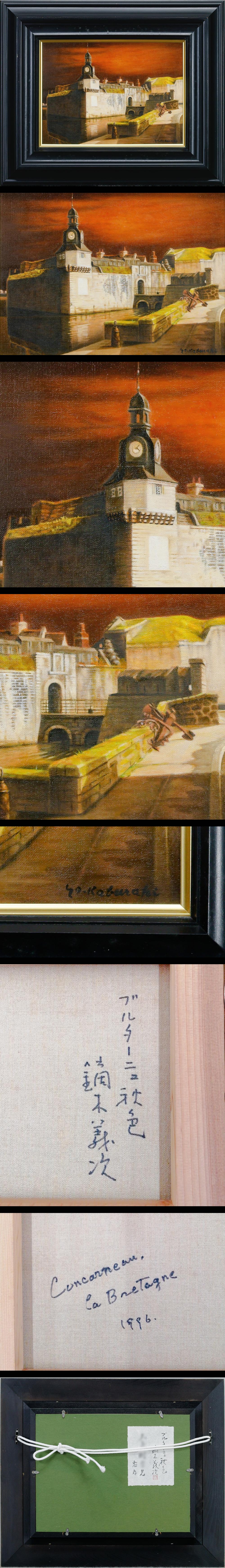 【真作】【WISH】鏑木義次「ブルターニュ秋色」油彩 4号 1996年作 夕映えに染まる古城の水辺 #25102184 收藏