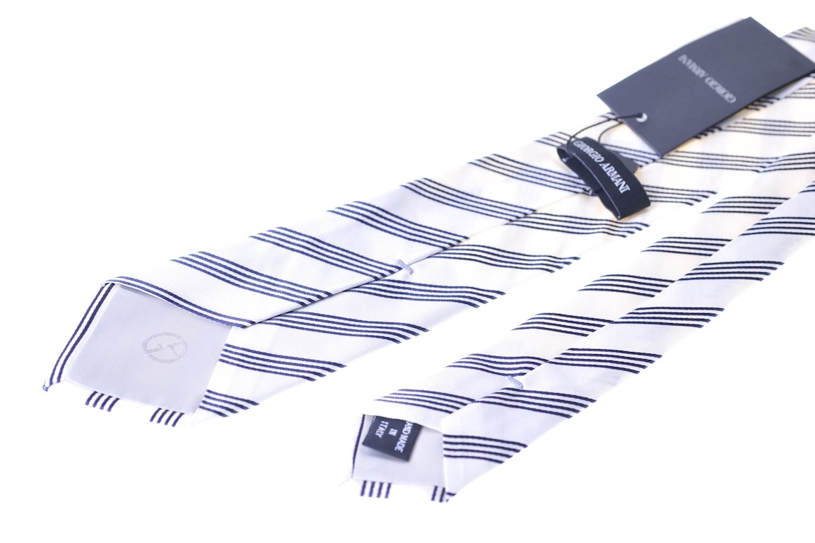 SALE★[TI1300]ジョルジオアルマーニ黒ラベル ネクタイ 白ストライプ 收藏