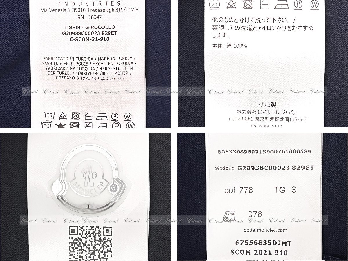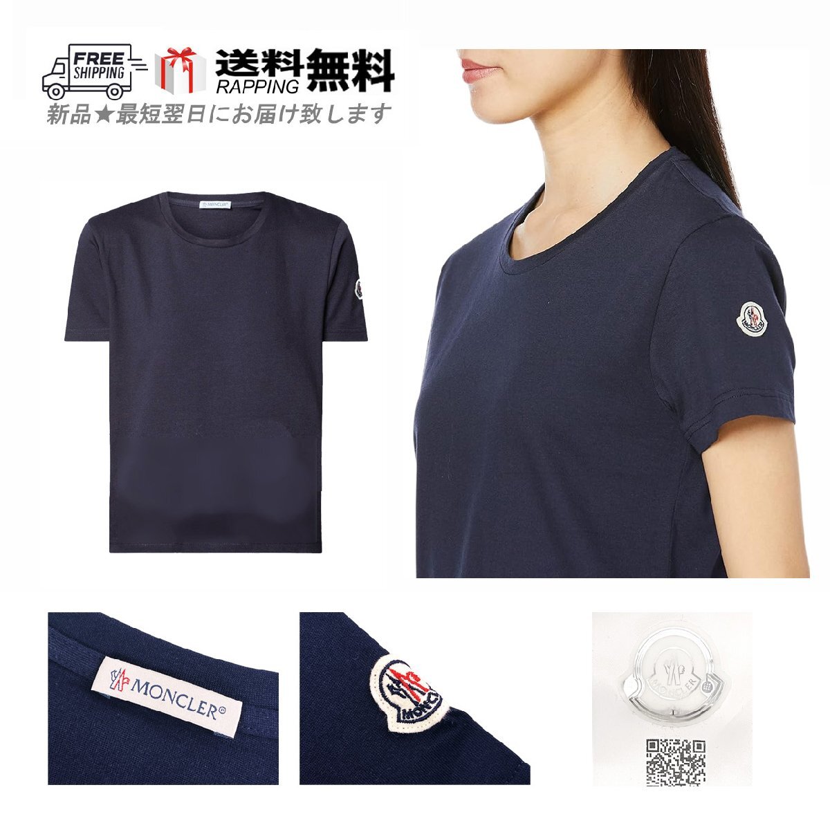 L845-S.. MONCLER モンクレール Tシャツ パッチ クルーネック コットン 刺繍 レディース ロゴ ★ 778 ネイビー 收藏