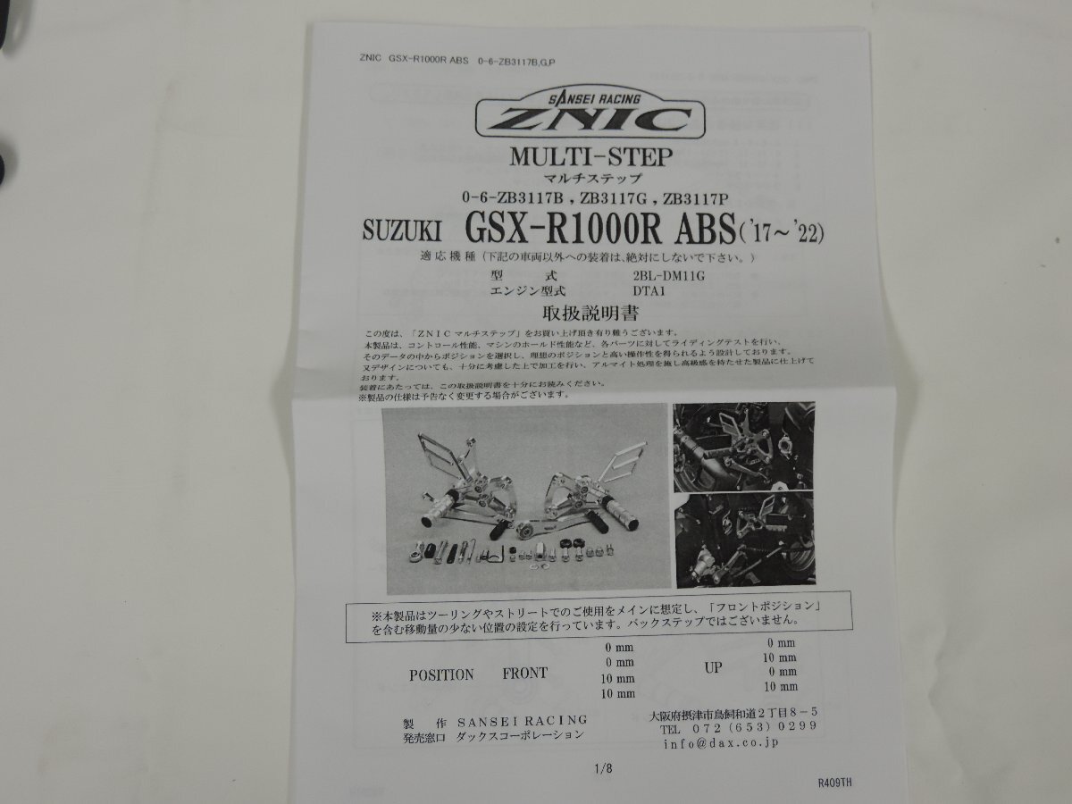 ★@842★バックステップ 【未使用品】 サンセイ ZNIC マルチステップ 17~22GSX-R1000R ABS ケミカルブラック 0-6-ZB3117B[60] 收藏