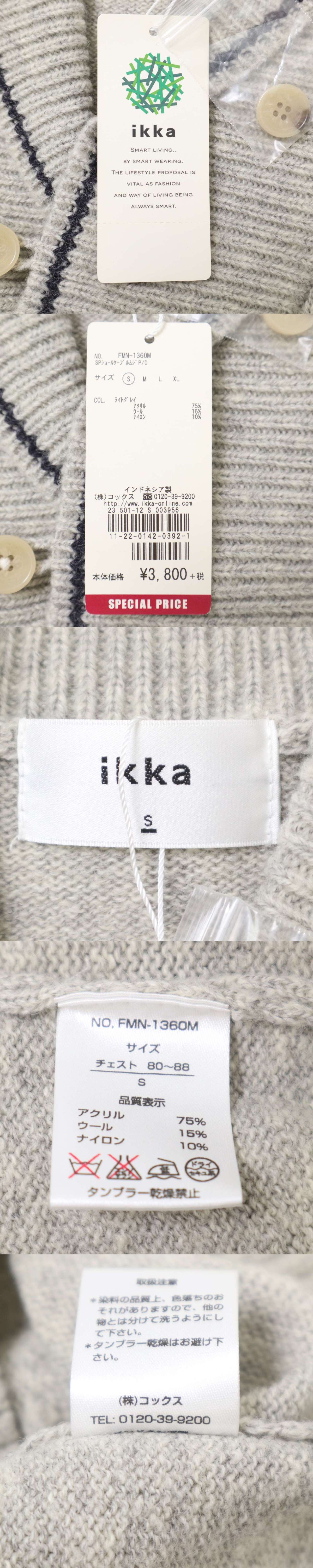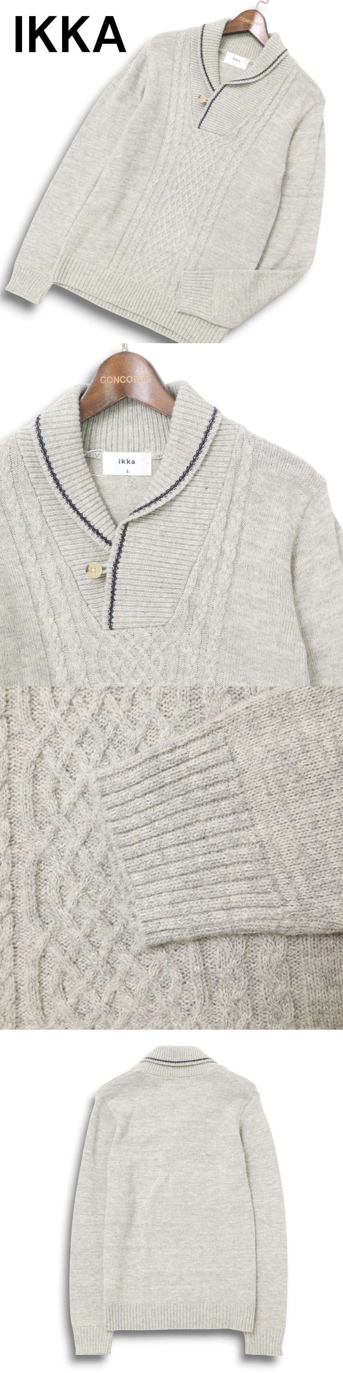 【新品 未使用】 IKKA イッカ 秋冬★ ウール混 ショールカラー ケーブル編み セーター ニット Sz.S メンズ 灰 グレー 收藏
