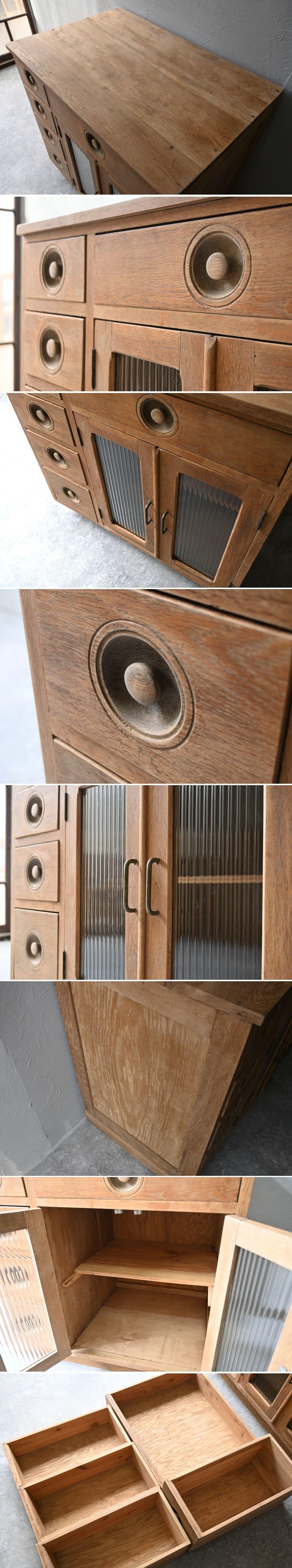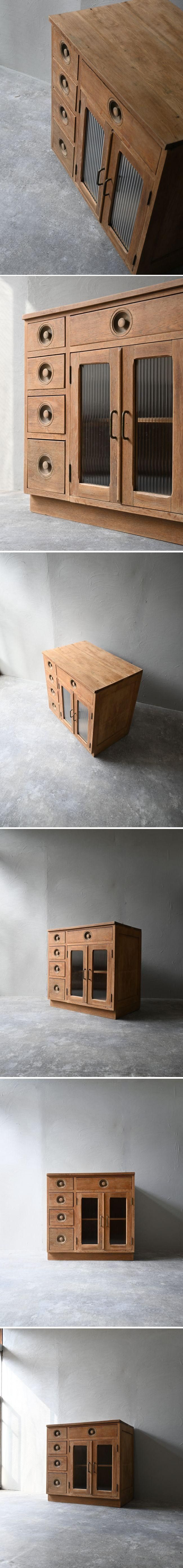 古い引き出し5杯モールガラス収納棚 アンティークアトリエ陳列台作業台食器棚キッチン収納本棚書棚店舗什器 收藏