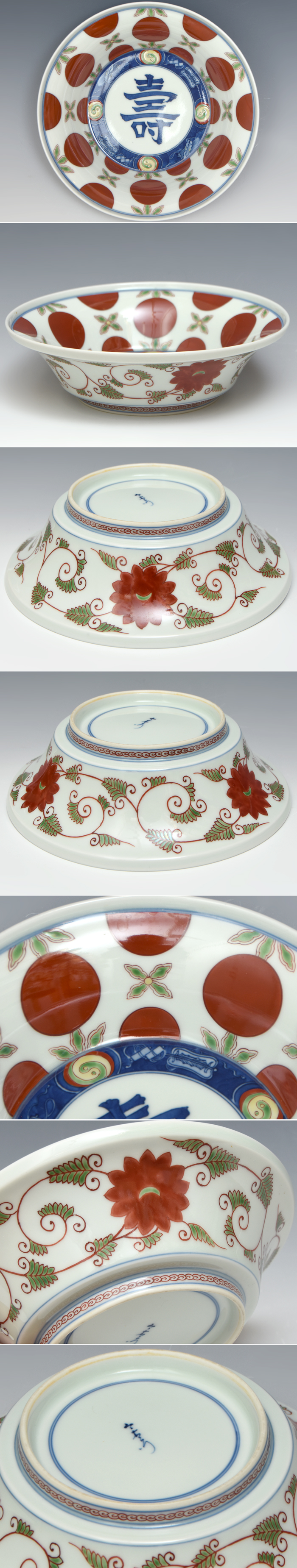 肥前有田 十二代 今泉今右衛門(作)錦赤玉模様 「寿字」菓子鉢 菓子器 料理鉢 和食器 懐石道具 会席道具 |