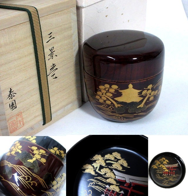 三景棗 鵬雲斉好 欅溜 蓋裏 立ち上り蒔絵 秦園 作 共箱【説明欄に詳細写真有り】の出品です。