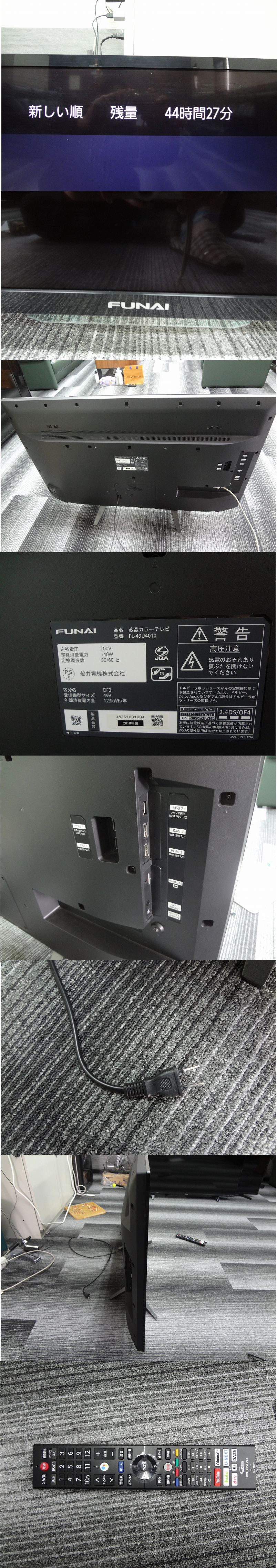 ★KZか4150 FUNAI 船井電機■LED液晶テレビ■FL-49U4010■49V型■2018年製■4K 液晶テレビ 録画機能 内蔵HDD■来店 大阪 收藏