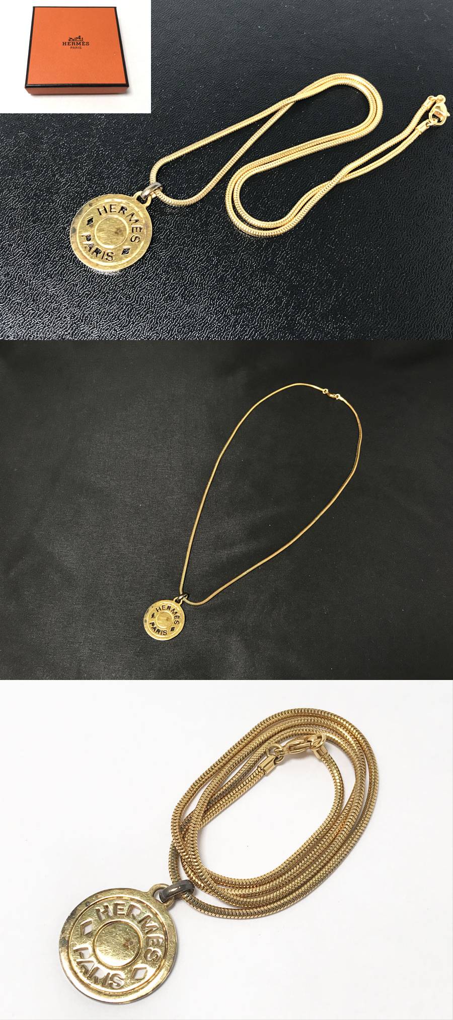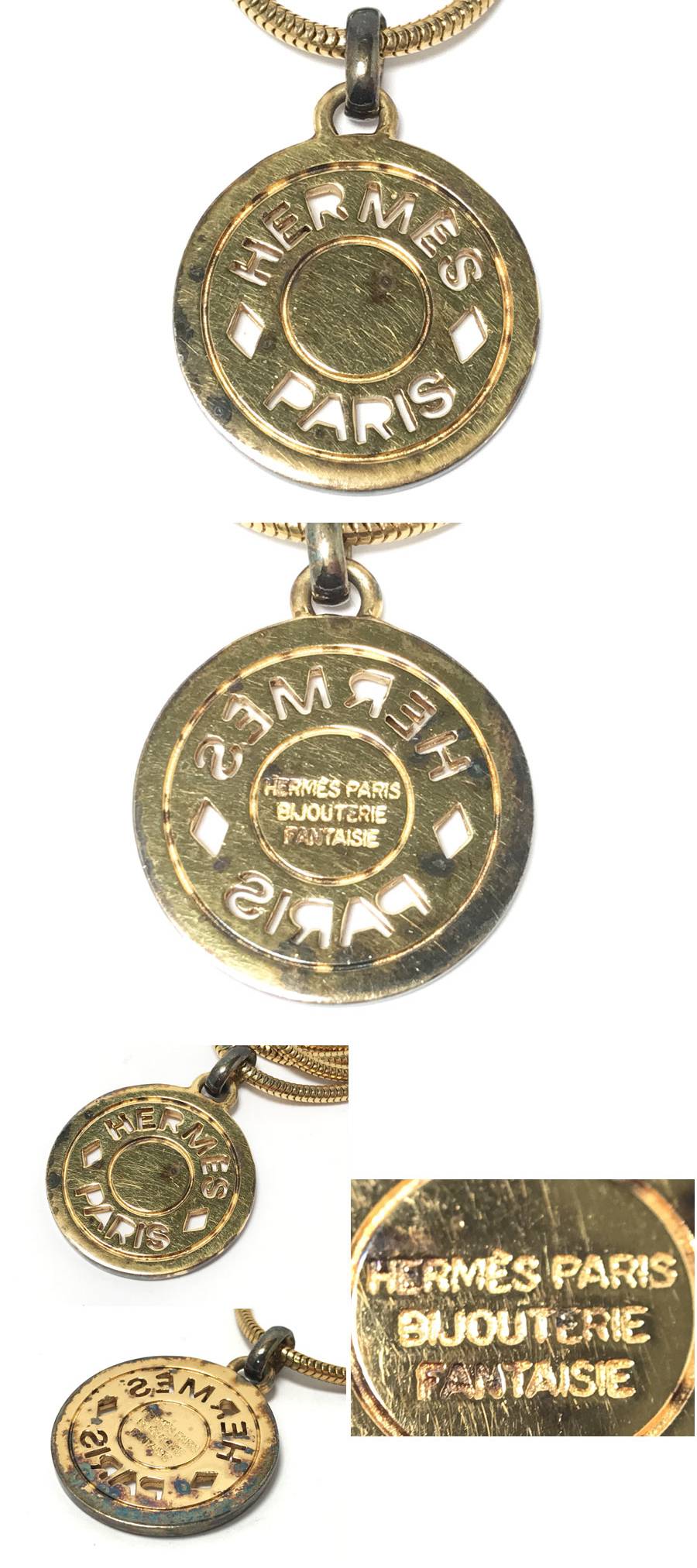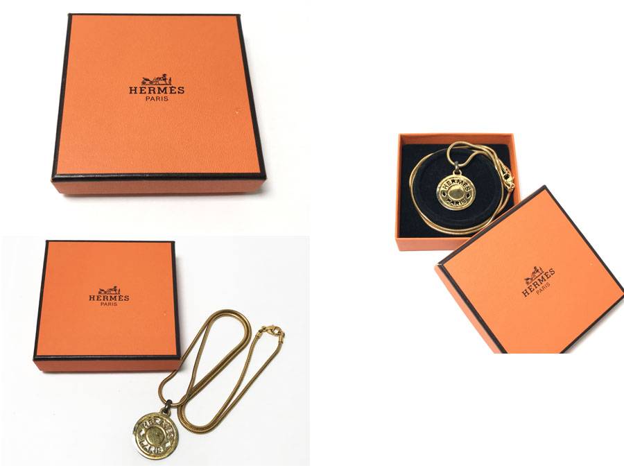 ◆HERMES エルメス セリエ コイン ゴールド GP ペンダント ネックレス アクセサリー 箱付き 收藏