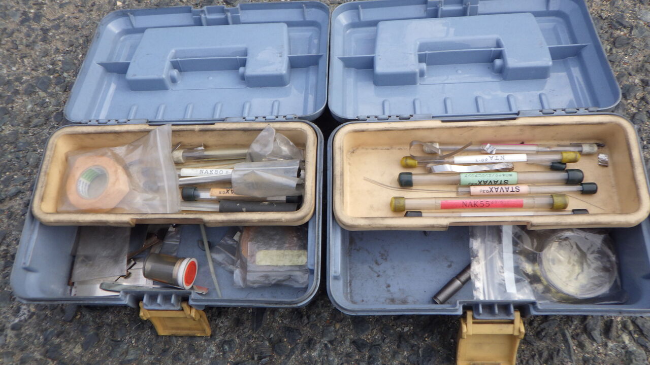 商品は写真にあるDr.溶作と溶着機、2台を乗せられるカート(ボンベと補修部材を乗せて運べる便利なものです)、
