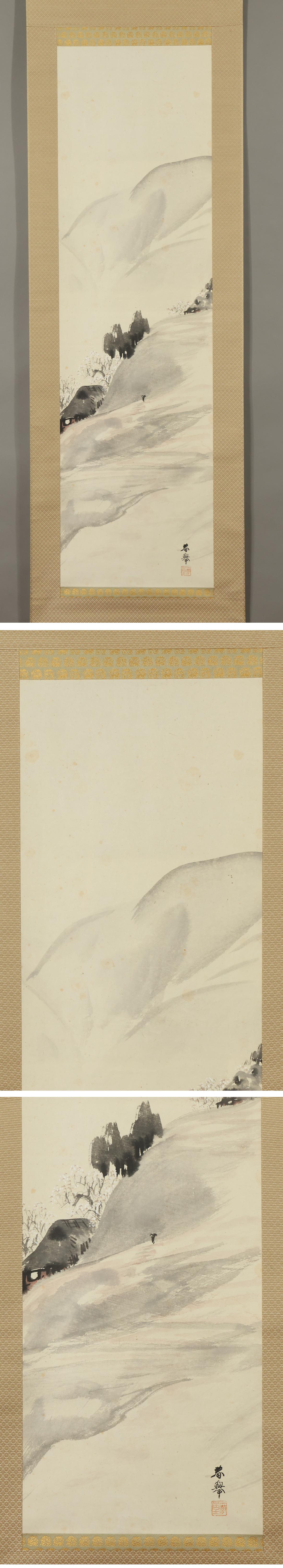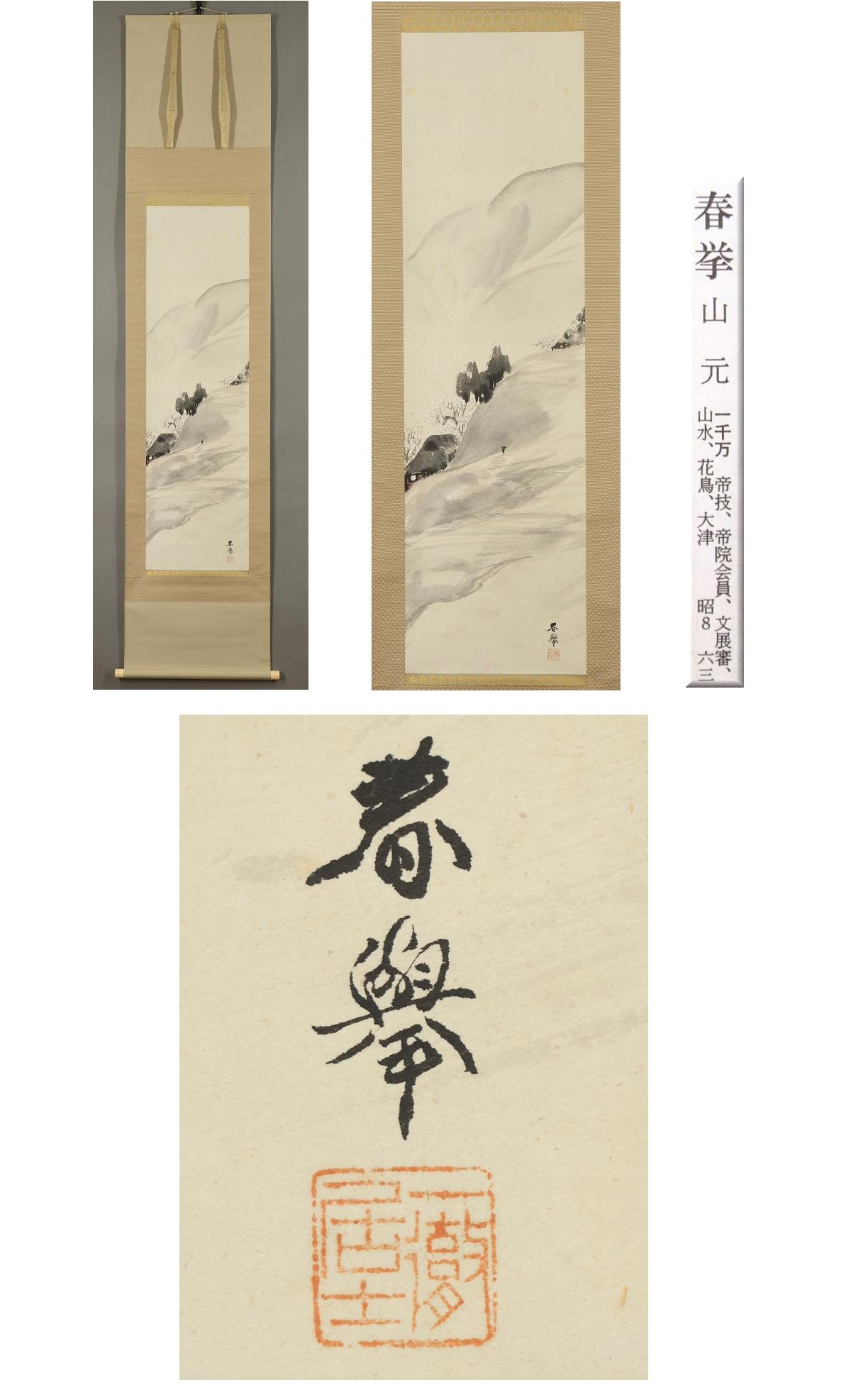 【真作】山元春挙◆春景山水◆二重箱◆滋賀県◆肉筆◆紙本◆掛軸◆x216 收藏