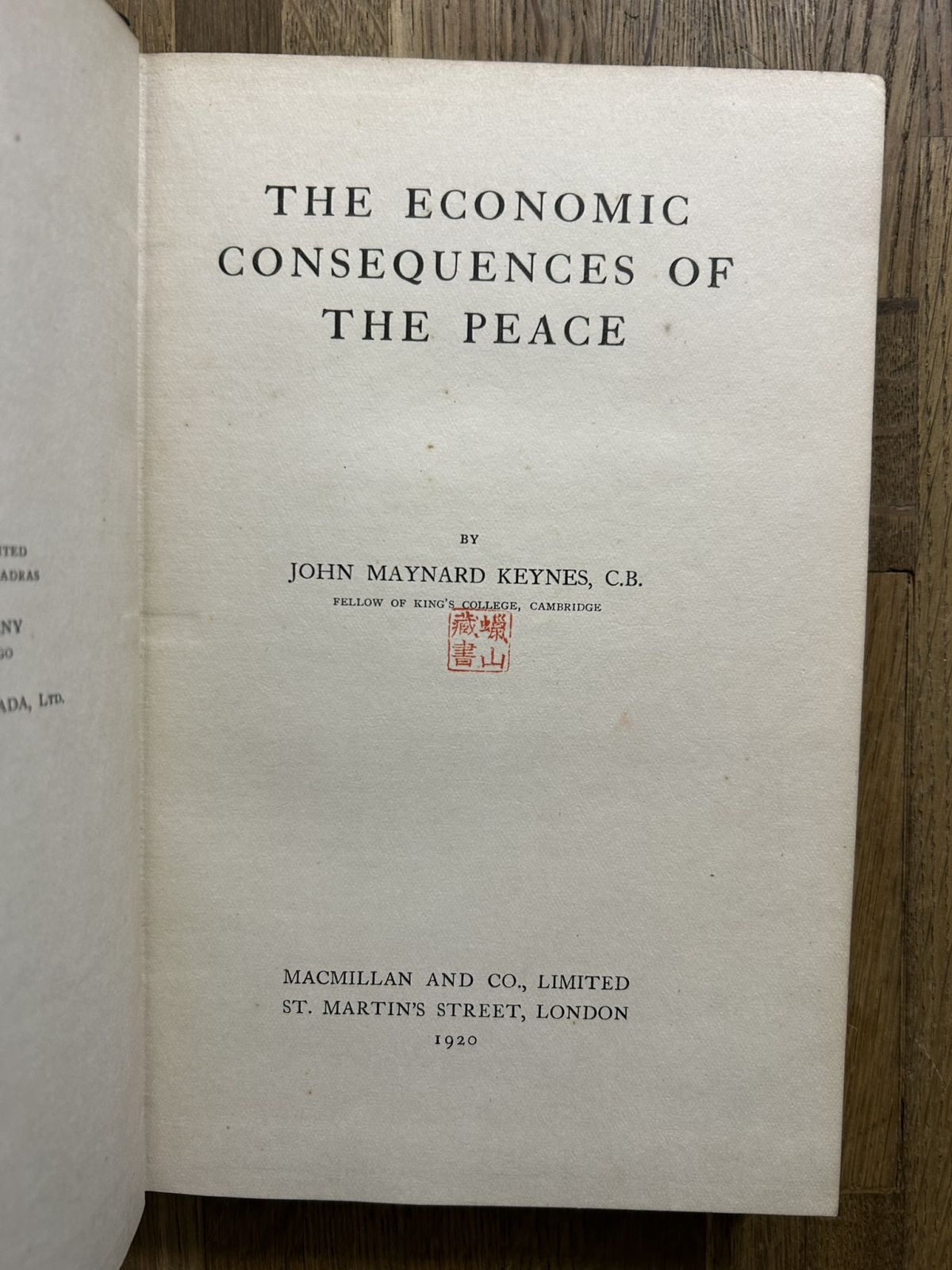 1920年 ジョン・メイナード・ケインズ 平和の経済的帰結 John Maynard Keynes, The Economic Consequences of the Peace 英文洋書古書 收藏