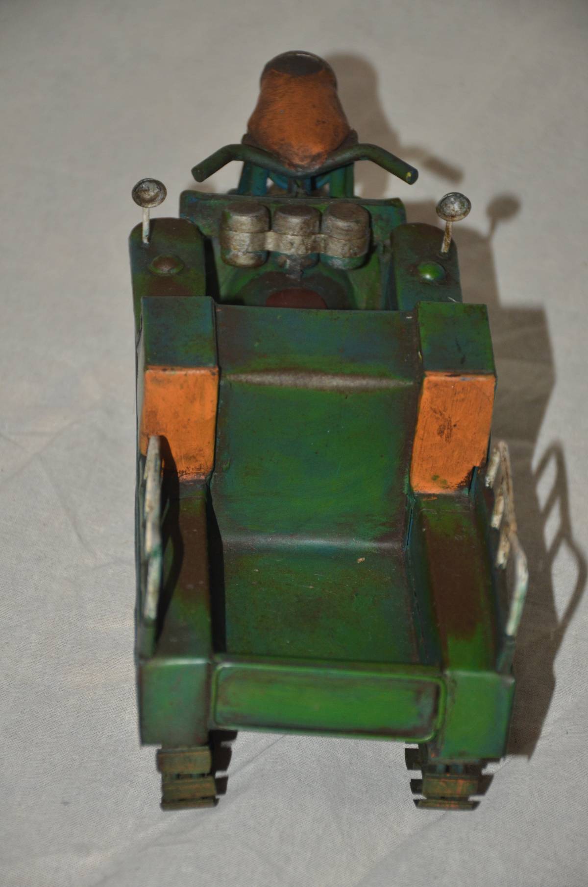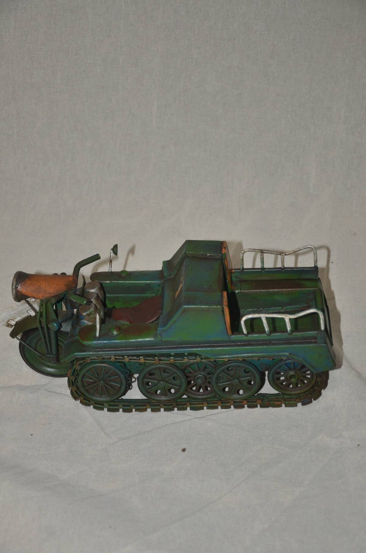 手作りの、第二次大戦のドイツ軍半装軌車、ケッテンクラートと思われる模型です。車体、キャタピラー、転輪、前輪、全て磁石に反応します。サイズは、幅10.5センチ、長さ28センチ、高さ11センチ、重さ769グラムです。本文下の追加写真もご覧ください。ヤマト運輸宅急便で、全国一律700円でお送りさせていただきます。