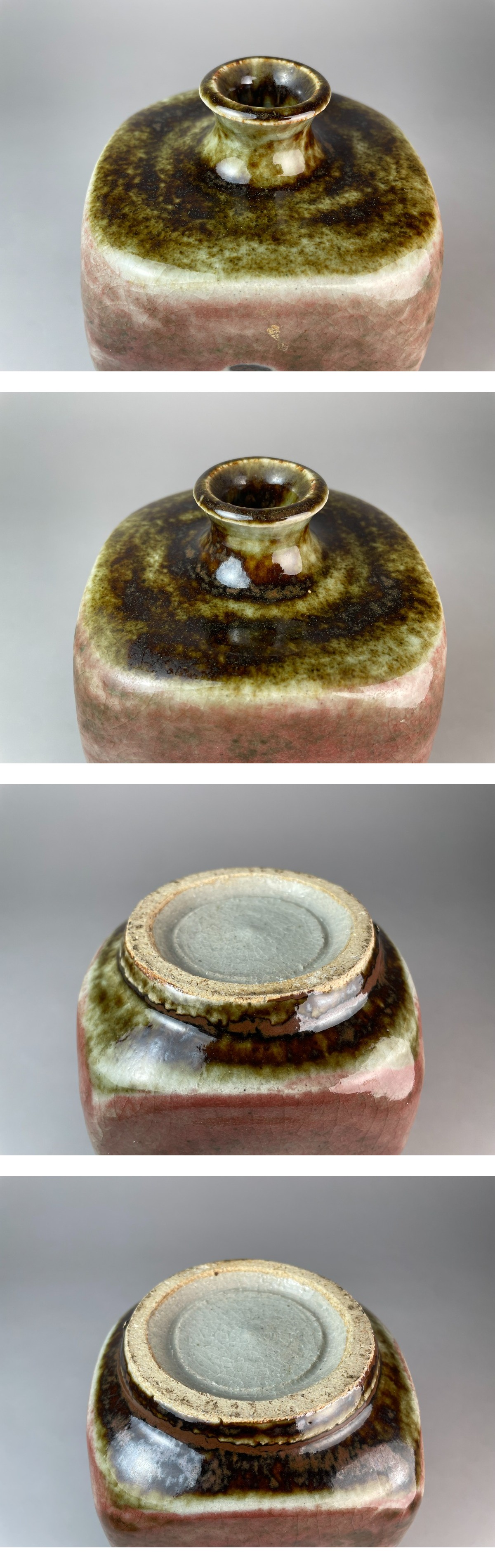 A752 河井武一 花紋扁壺 河井寛次郎 師事 民藝 京焼 花瓶 花器 華道具 骨董品 美術品 陶芸 作家物 壺 伝統工芸 置物 收藏