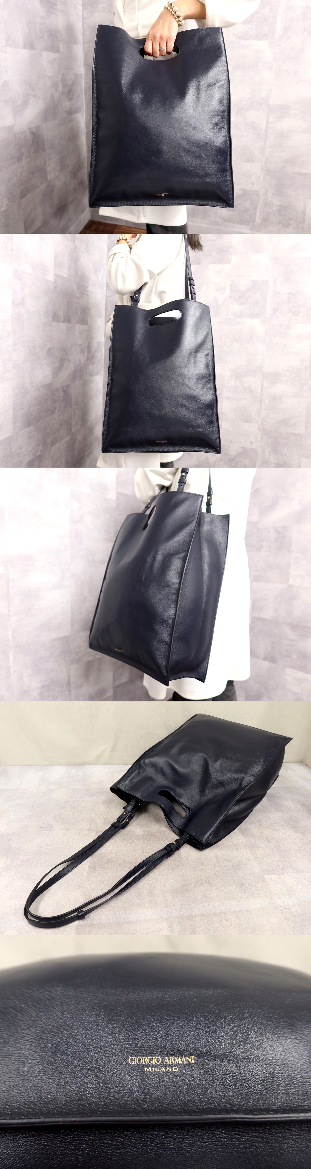 ●超美品●GIORGIO ARMANI ジョルジオ アルマーニ●カーフ レザー 本革●2way ハンド バッグ●ネイビー●ゴールド金具●A4 かばん●Js63105 收藏