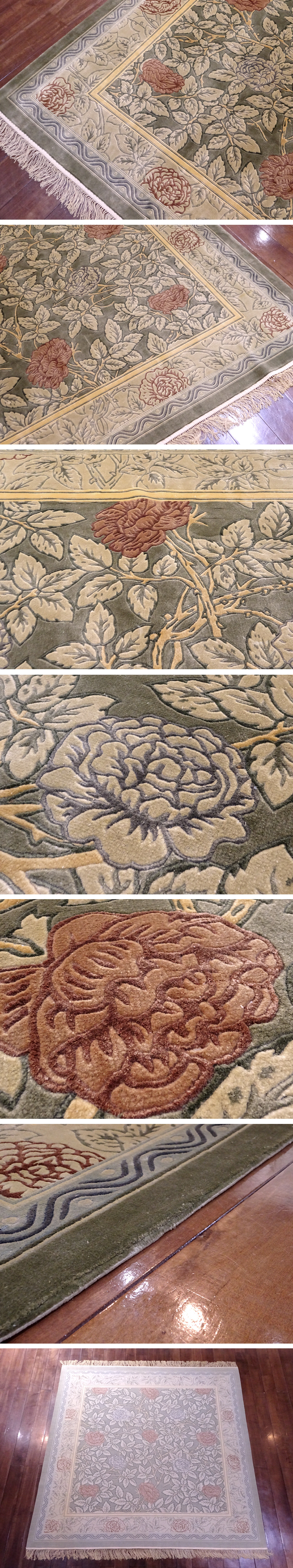 ∇花∇高級中国緞通 シルク・ウール 牡丹文様絨毯 203×201㎝ 敷物カーペット 53 收藏