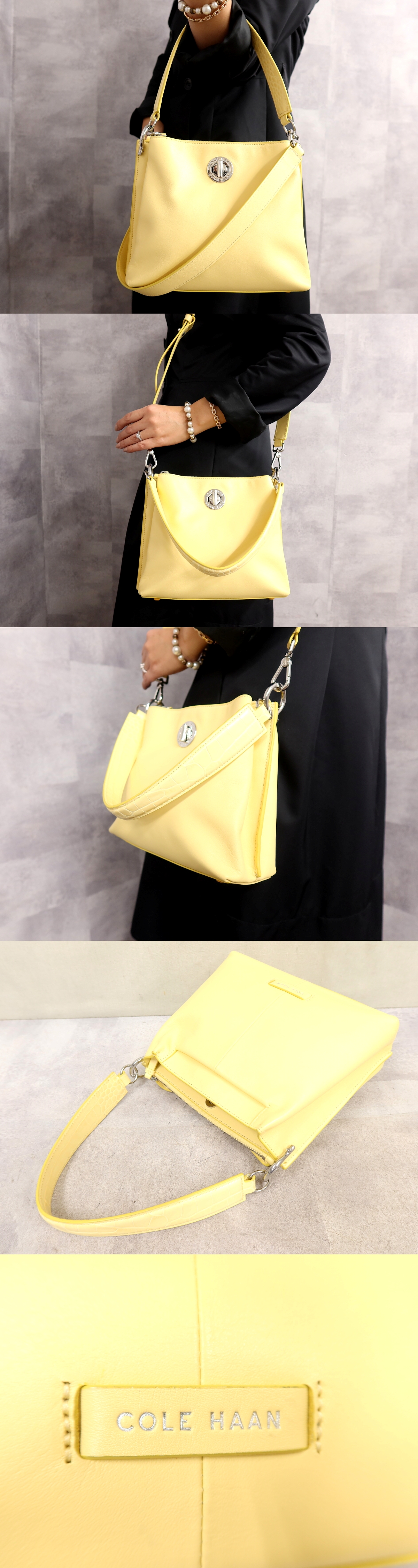 超美品●新品同様●コールハーン●ロゴ金具●クロコダイル 型押し カーフ レザー 本革●2way ハンド バッグ●イエロー系●SV金具●Js63394 收藏
