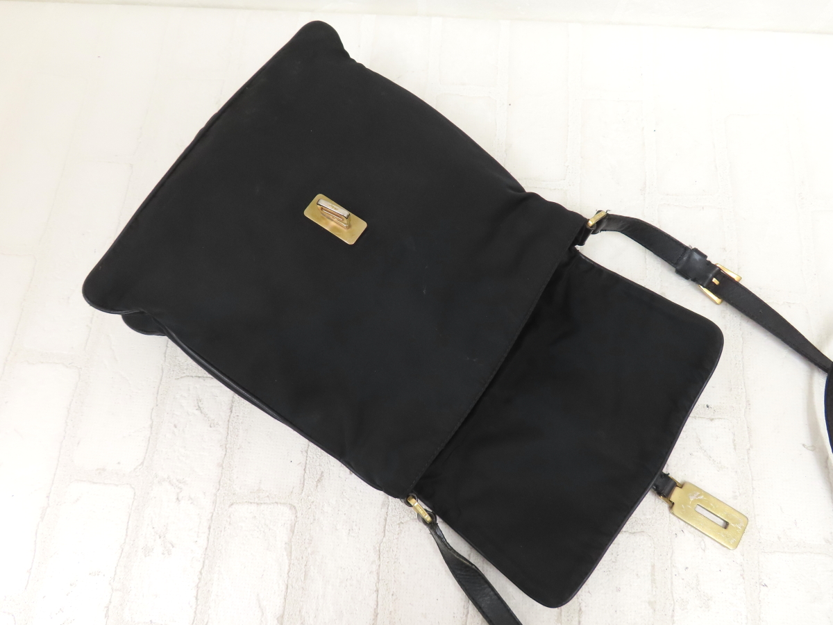 ◆美品◆PRADA プラダ◆ナイロン カーフ レザー 本革◆ショルダー バッグ◆ブラック ゴールド金具◆イタリア製◆ターンロック◆A14781 收藏