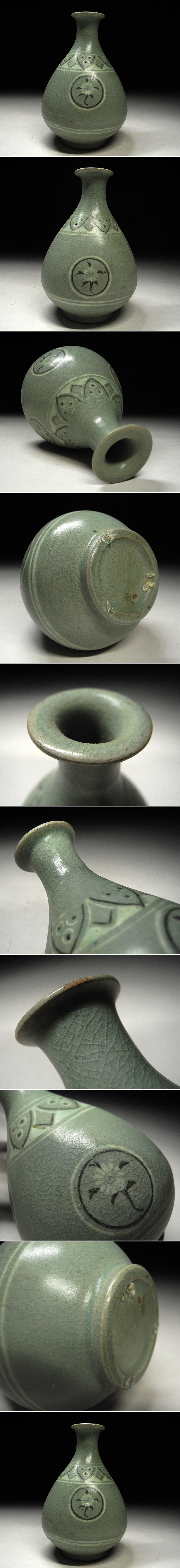 緑屋h■ 朝鮮美術 高麗青磁 象嵌 徳利 花瓶 壺 朝鮮古陶 時代物 i9/12-6245/29-7#60 收藏