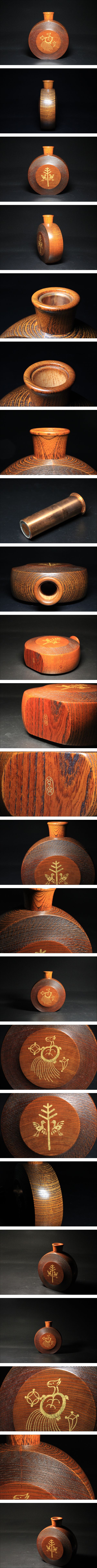 □■希少作!和田瑾斎 べんとう型? 木製金彩宝文花入 偏壷 銅製落とし付 極上杢目 山中塗 轆轤挽き■□ 收藏