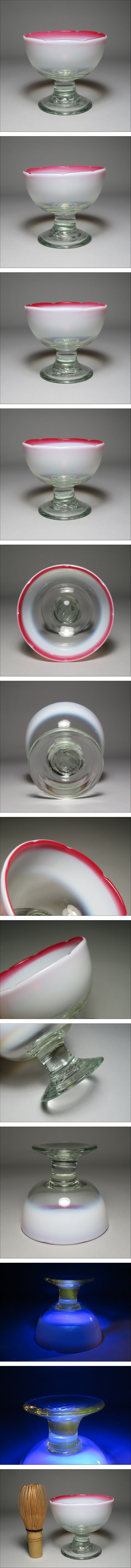 | 1円スタート~明治期~大正ロマン 3-1 乳白色 赤縁口 輪花型 氷コップ/アイスカップ ウランガラス 気泡ガラス 吹きガラス/昭和レトロ | ||