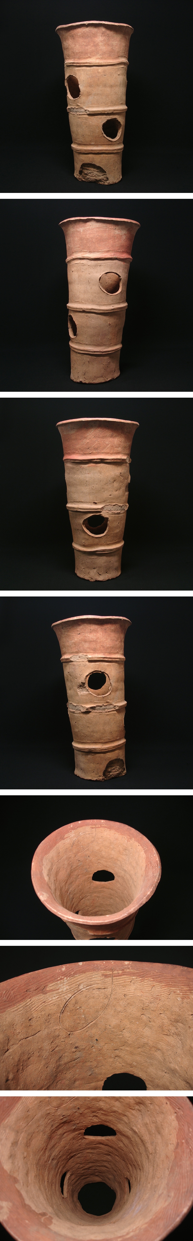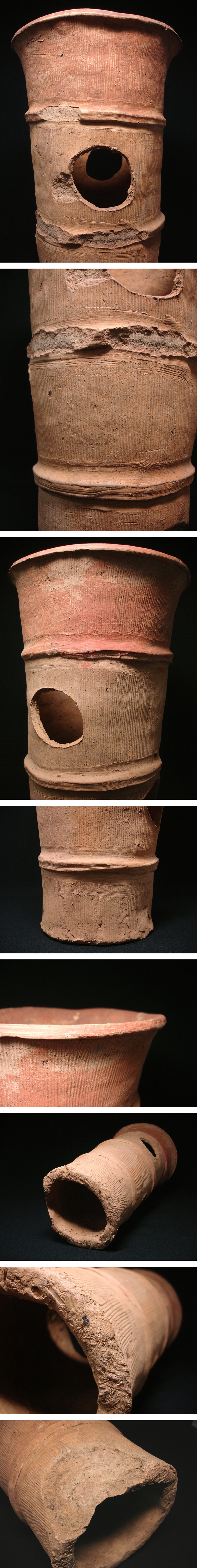 慶應◆茨城県内古墳遺跡出土品 古墳時代 円筒埴輪 全体に櫛目文入 高さ42cm 古代陶器鑑賞古陶磁縄文弥生須恵器新羅土偶埴輪勾玉古鏡 收藏