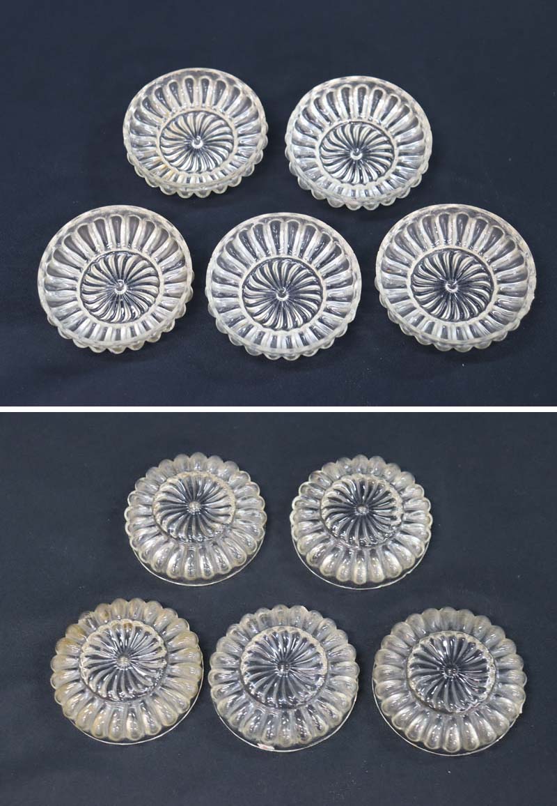 鉛ガラス手塩皿5枚。俗に水晶手と呼ばれる型ガラスです。