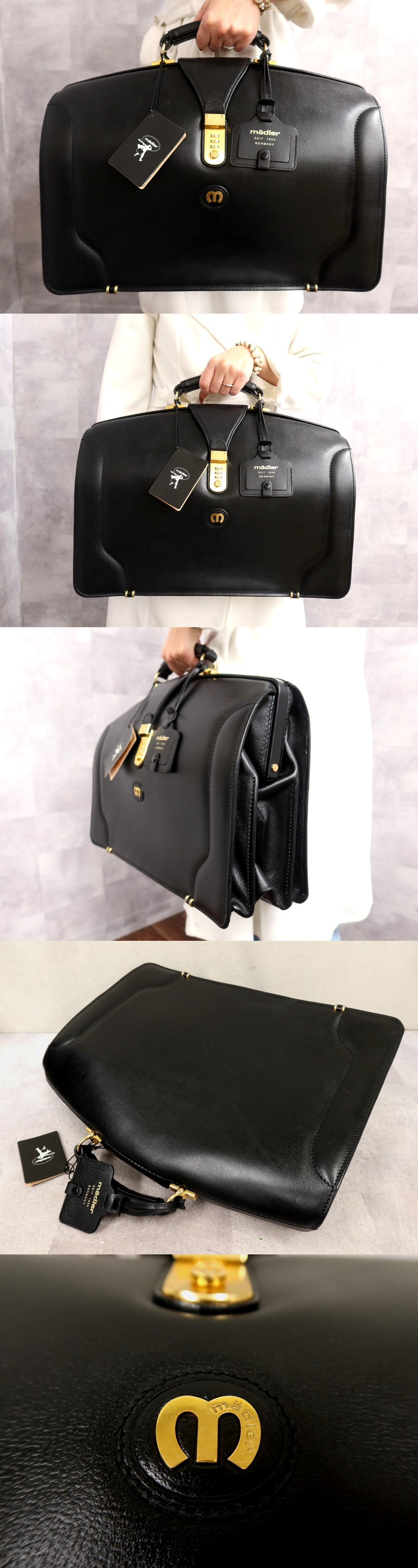 ●超美品●Madler マドラー●メンズ●カーフ レザー 本革●ダレス ハンド バッグ●黒●ゴールド金具●A4 ビジネス●書類 かばん●Js64090 收藏