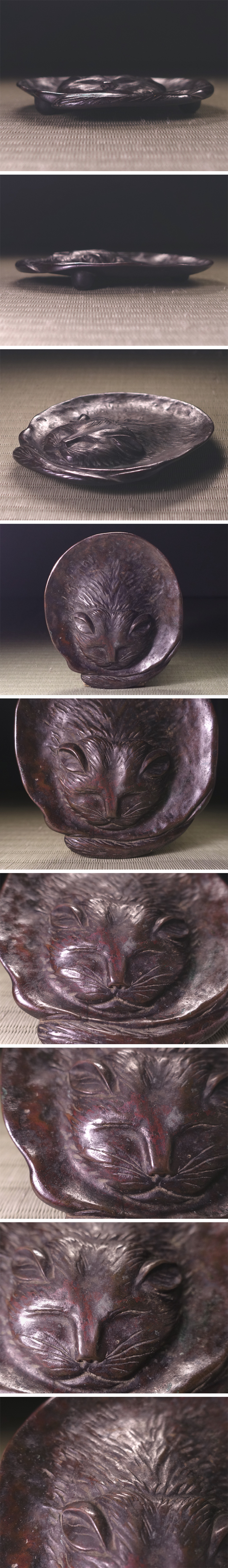 ∇花∇本物保証!堀山城十世【堀浄親(堀政五郎)】作 唐銅猫灰皿 共箱付 浄親(花押)銘 愛らしい猫姿が写実に表された名品 收藏