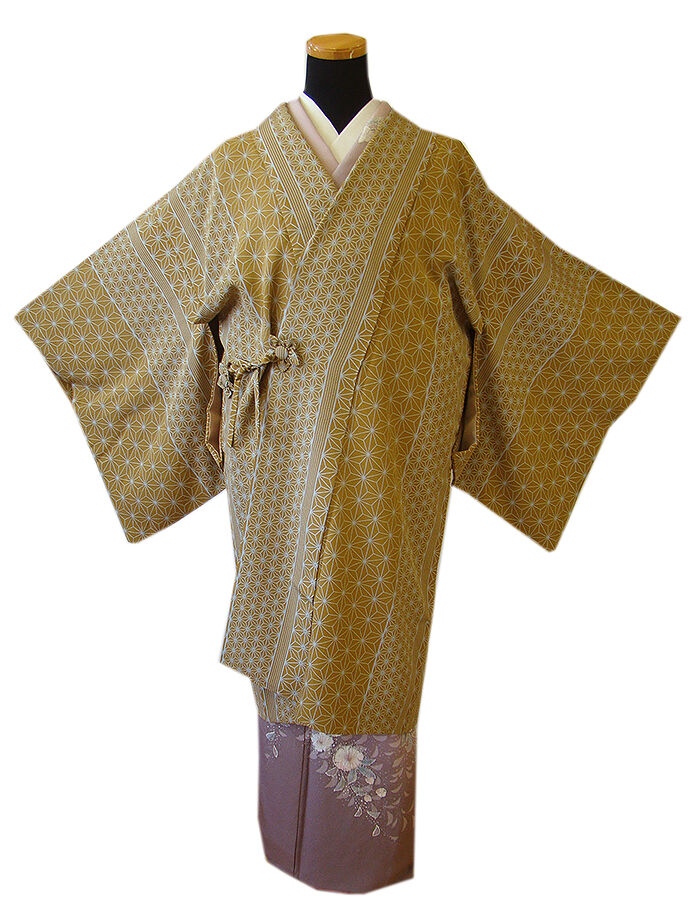 きものしらゆり 裄65cm 極上ちりめん地 麻の葉柄 ロング 道中着 正絹 身長151cm~158cmの方に最適 B823 收藏