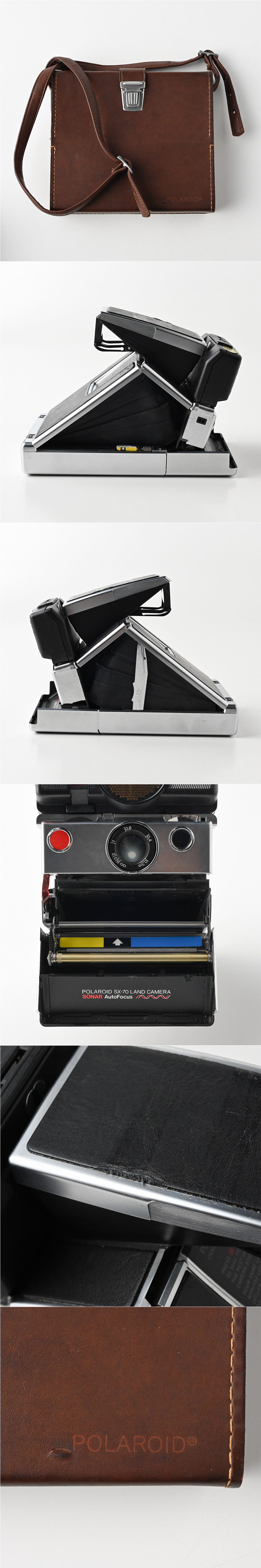POLAROID SX-70 LAND CAMERA SONAR AutoFocus 収納バッグ/フラッシュ付 動作未確認 インスタントフィルムカメラ ポラロイド 光学機器 收藏