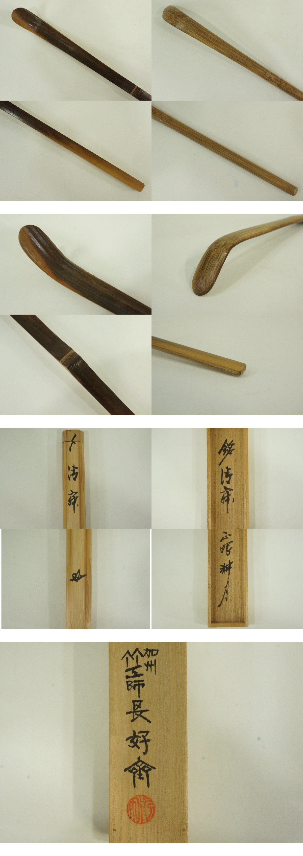 長好斎が削った茶杓に老師が銘を記し、共箱に花押を添えた作品が数多く現存しています。