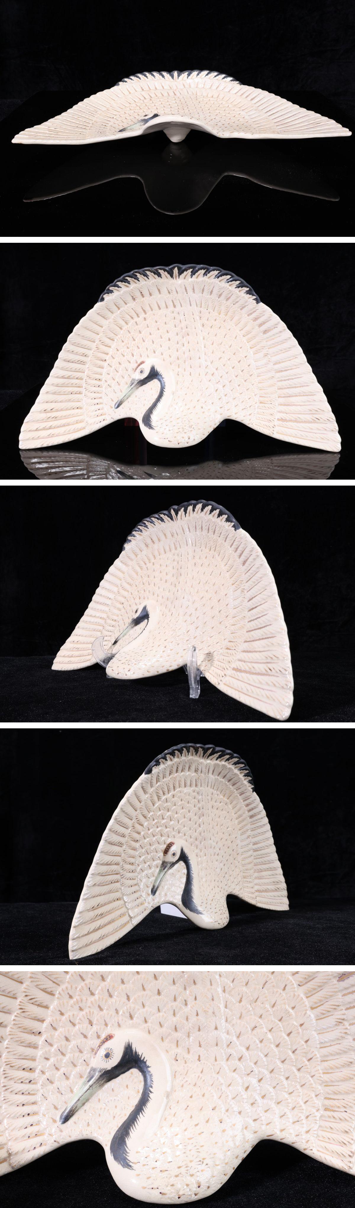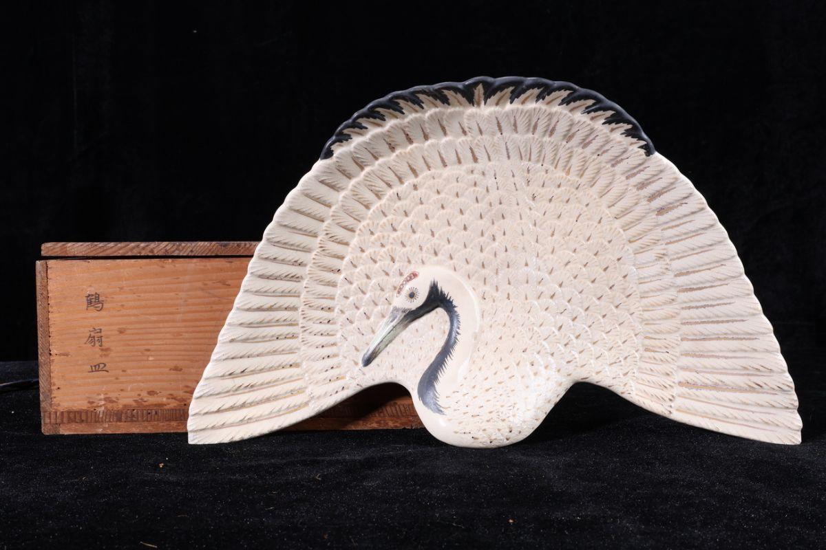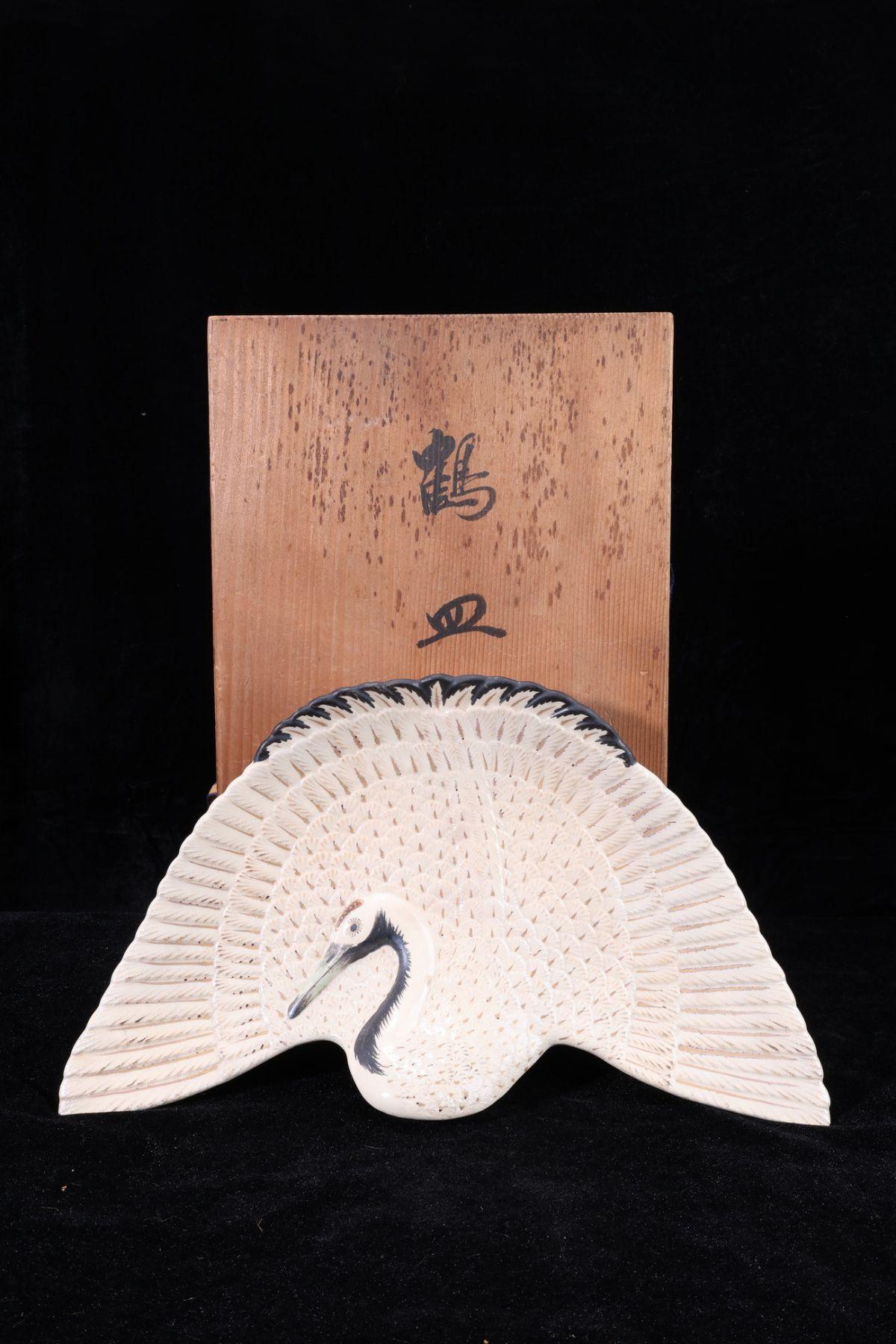 【珍品堂】1円から 京焼 山澤松篁 鶴皿 共箱 茶道具 煎茶道具 時代物 古美術 骨董品 AC37E-J 收藏